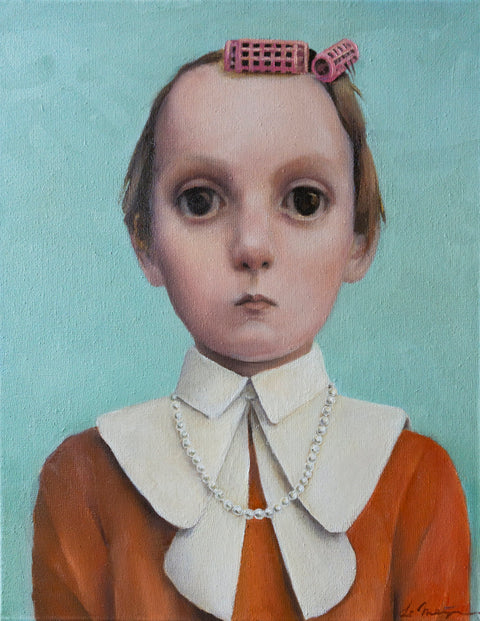 This work is unique in the artist’s series, as the character’s body is almost a sketch. Deliberately transparent.